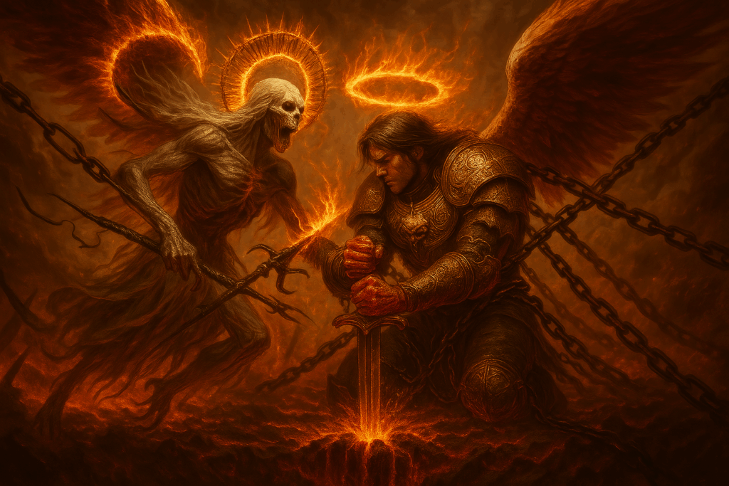 Lucifer and Saint Michael sent their champions—figures woven from celestial fire and ambition—each scheming to command the boy and bend fate to their will. Their conflict surged through time itself, yet Nimrod was not made to be ruled.
